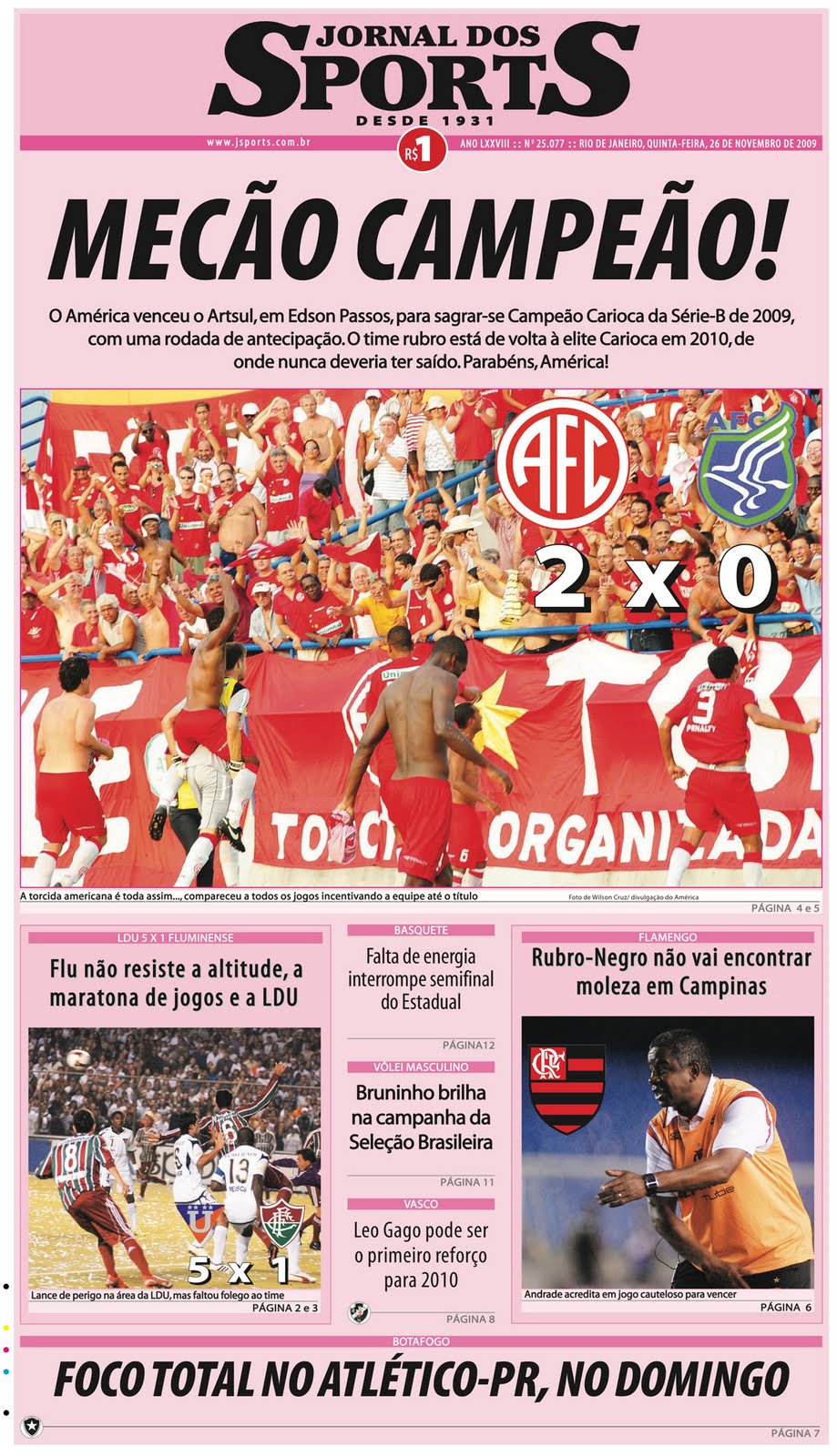 Jogo do título: América 2x0 Artsul